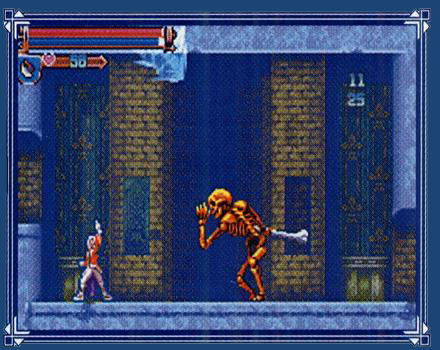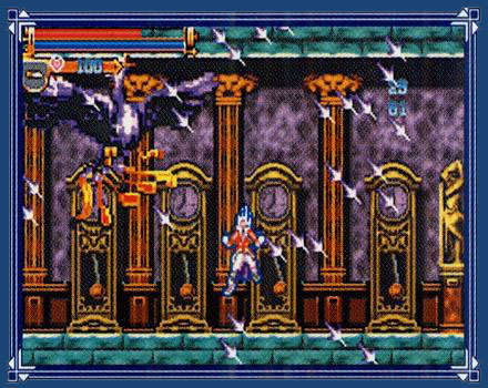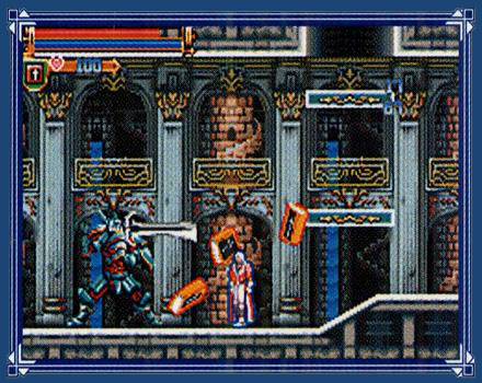 New to the series is something called Spell Fusion, where, with the help of spell books littered throughout the castle, sub-weapons have new alternative attacks that use up an MP bar instead of hearts. Spell Fusion quickly turns the tide to your favor as most of them are don't seem to have been balanced with too much care, and deal more damage than enemies can withstand.