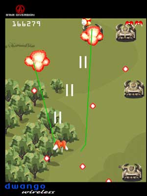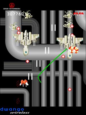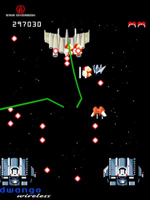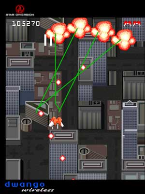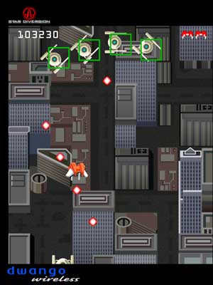 Dwango's latest is a real eye-opener to both those that think the 2D vertical shooter is dead and to those that think a cell phone game can't make them sweat. A loving tribute to the great ghosts of UPL, Nichibutsu, and Compile, Star Diversion is the kind of game I thought would never get made - an old-school hardcore wonder aimed at a cutting-edge crowd.