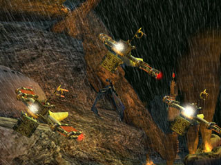 If games were graded on graphics, sound and presentation alone, this would be a perfect game. The production values are high even compared to other top-tier Xbox titles. Not only is the game world exhaustively imagined visually, with towns constructed on the backs of sandworms and machines designed with such organic beauty that they truly look alive, but the characters speak a unique language specifically designed for the series (allegedly a fusion f German and Japanese). The soundtrack ranges from ethereal tribal sounds to techno-infused battle marches and complements the game’s primitive/futuristic aesthetic.