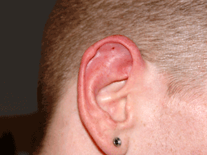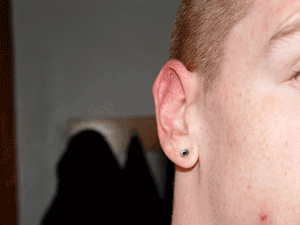 Close up of the ear after draining (still kinda puffy, but not nearly as bad as it was before I started):