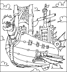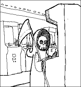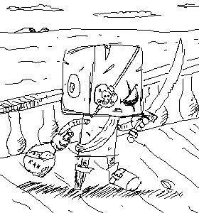 A little square headed robot pirate doodle.