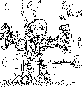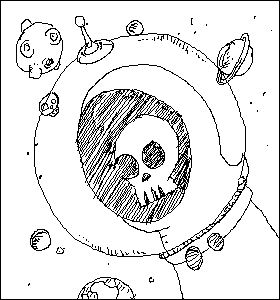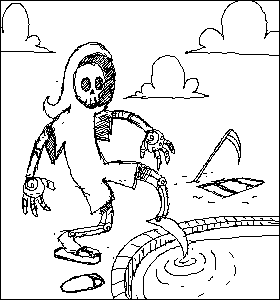 Some more doodles or robots, monsters, clouds, and the grim reaper: