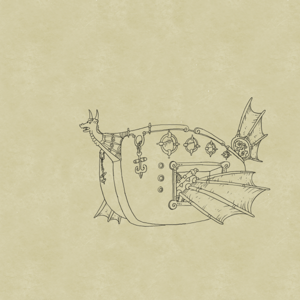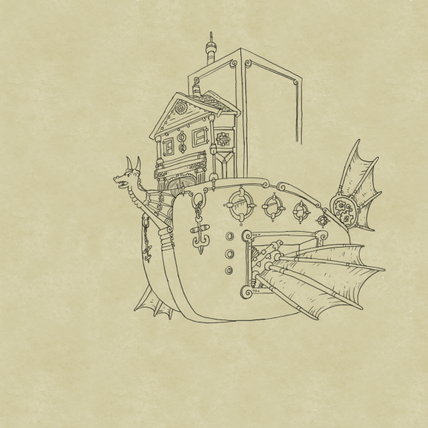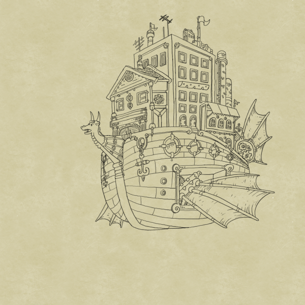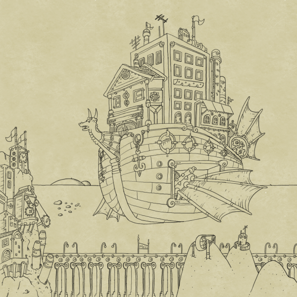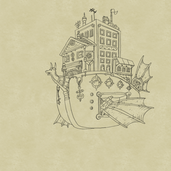 Add in the rest of the background, another airship off in the distance and we are all done.