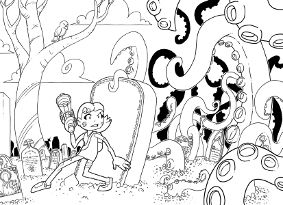 All of the tentacles are done now. I am moving onto background details and working on the gravestones.