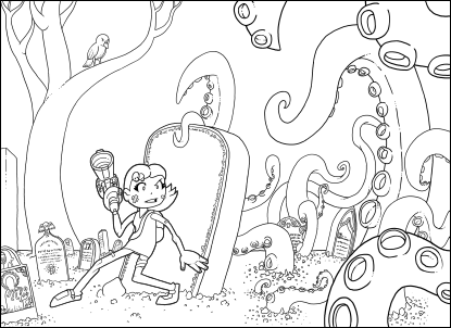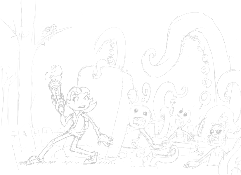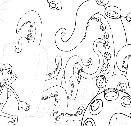 Next up, I really wasn't feeling the zombies too much, so I dropped them all together and updated the rough with a bunch more tentacles: