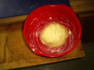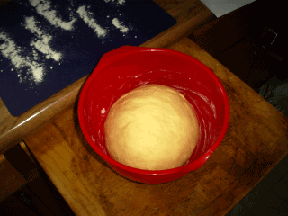 The dough ball is trying to take over it's red plastic prison. So far so good.
