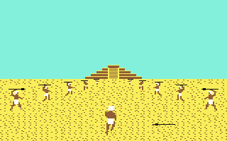 Aztec Challenge became COSMI's first hit in 1983. In addition to the Atari 8-bit version, there was a graphically downgraded port to VIC-20.
